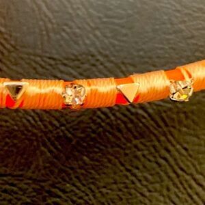 TAGS: rebecca minkoff choker, orange cord necklace, crystal cord choker, pink and white cord necklace, rhinestone statement choker, lightweight boho necklace, hippie style jewelry, festival necklace, teen girl jewelry, graduation gift, bold statement necklace, bright color choker, tribal style necklace, eclectic fashion, summer accessory