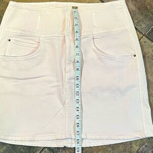 Rebecca Minkoff Light Pink Denim Skort Large. Measurements in photos. In good, pre-loved condition. Comes from a smoke free home.