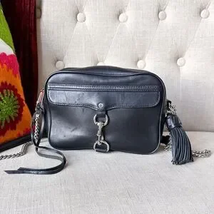 Rebecca Minkoff's M.A.B. Camera Black Leather Crossbody Purse Bag