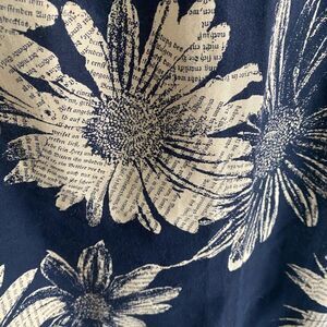 This unique skirt has like a news print print on the fabric. Back zipper closure. Excellent condition. No signs of wear.