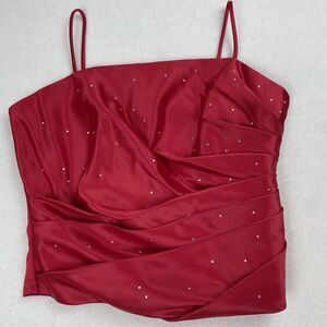 Rebecca Red 2pcs Gown Rhinestone Prom HOCO Bridesmaid-M