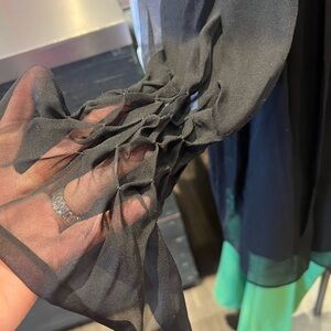 black smocked baby doll silk dress w/sheer sleeves