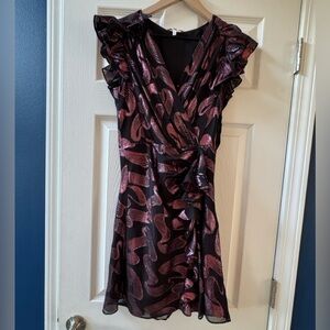 Rebecca TAYLOR SILK FAUX WRAP SLEEVELESS METALLIC LUREX JACQUARD MINI nwot
