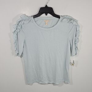 {Rebecca Taykor} NWT Ruffled Sleeve Light Blue Top - Large