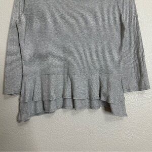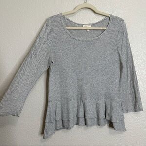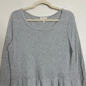 Rebecca Taylor 100% Cotton Gray Cream Striped Knit Peplum Top, Sz Large