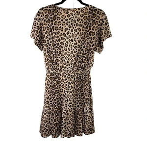 Rebecca Taylor 100% Linen Leopard Animal Print Belted Dress short Sleeve Small