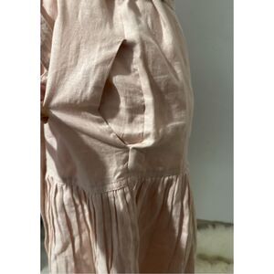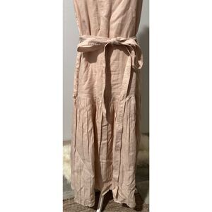 Rebecca Taylor 100% linen pink sleeveless drop waist pleated maxi dress S great condition precept old money quiet luxury dress