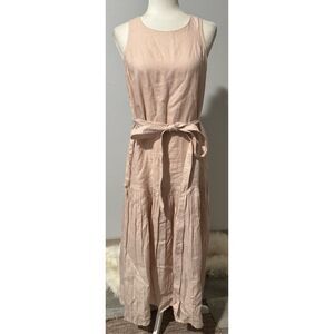 Rebecca Taylor 100% Linen pink sleeveless drop waist maxi dress S