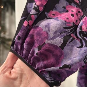 Beautiful silk blouse that has a drawstring cinch waist and it’s flowy versus super fitted.