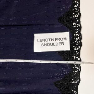 Rebecca Taylor 100% Silk Clip Mix Top 6 navy blue black lace sheer puff sleeve