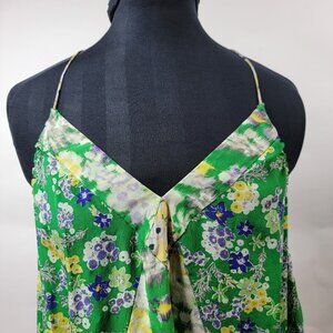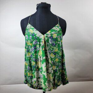 Rebecca Taylor top, silk camisole, green floral cami, summer festival top, silk floral tank, boho chic blouse, silk strappy top, Y2K revival, garden party outfit, spring summer layering piece