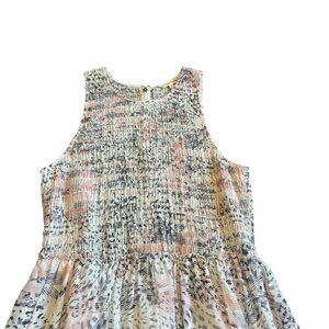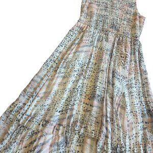 Rebecca Taylor 100% Silk Midi Dress Smocked Top Printed Flowy Size 10 Women's