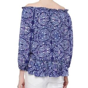 Description: 100% silk elastic neckline swing blouse can get worn on or off shoulder