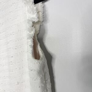 Rebecca Taylor 4 Snow Tweed V Neck Sleeveless Dress Striped Motif Cotton White