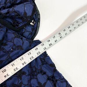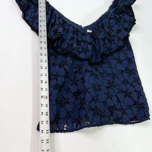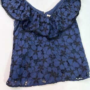 Rebecca Taylor Adriana Top Womens 4 Blue V-Neck Embroidered Floral Eyelet Ruffle