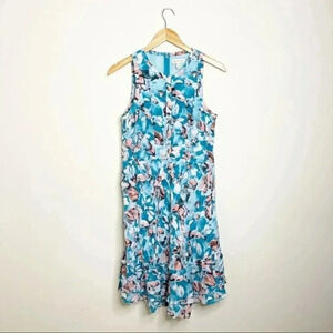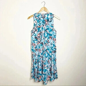 Rebecca Taylor Aloha Silk Floral Sleeveless Blue Dress Size 6