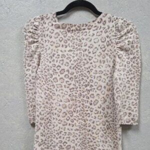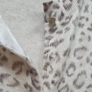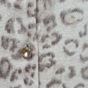 Rebecca Taylor Animal Print Puff Sleeve Cashmere Silk Button Front Sweater Small