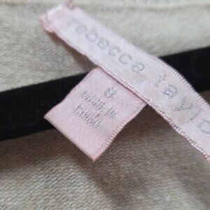 Elegant knit sweater by Rebecca Taylor. Features a soft cream fabric with black accents. Ideal for chic layering. Missing second button front top .that is why it is listed cheap