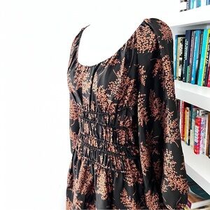 Rebecca Taylor Arden Fern Silk MIDI Dress Black/Copper Colored floral print L