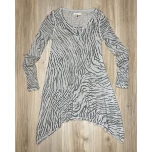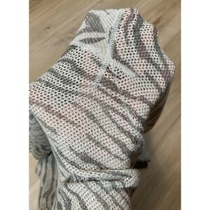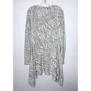 Rebecca Taylor sheer asymmetrical silk/cashmere dress in women’s size Small. Excellent condition. The fabric is 85% Silk & 15% cashmere. It’s very lightweight and soft with small mesh holes throughout. This dress would work well as a beach / swim coverup as well, because of the texture and silhouette.