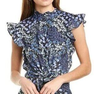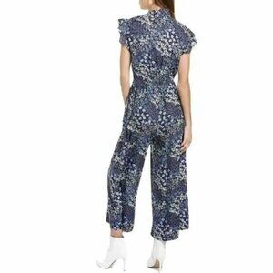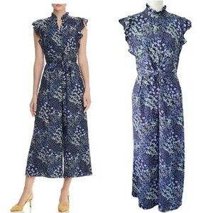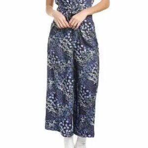 Rebecca Taylor Ava Silk Navy Blue Floral Print Crop Wide Leg Jumpsuit. SZ 6