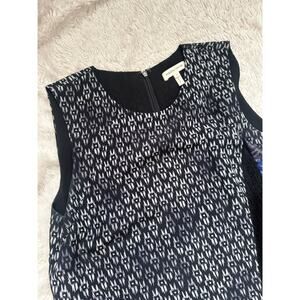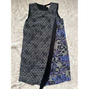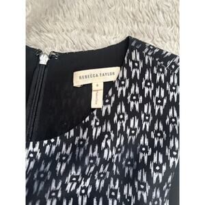 Rebecca Taylor Black 100% Silk Box Step Floral Fringe Shift Mini Dress Mod