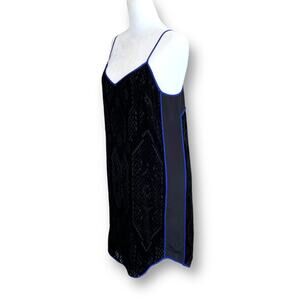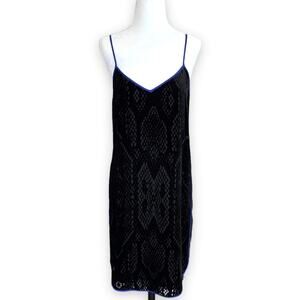 Rebecca Taylor Black Burnout Velvet Snake Print Slip Dress Blue Trim Size 4