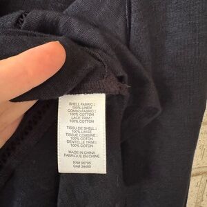 This Rebecca Taylor black crochet accent blouse is the perfect mix of effortless sophistication and everyday wearability. Made from a breathable linen/cotton blend, it drapes beautifully while remaining lightweight and comfortable. The delicate crochet trim across the shoulders and chest adds feminine detail, while the 3/4 sleeves make it versatile across seasons.