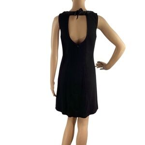 Rebecca Taylor black mini dress, sleeveless embellished dress, open back cocktail dress, beaded neckline formal dress, black party dress with pearls, Rebecca Taylor special occasion dress, sleeveless A-line black dress, holiday embellished dress, scoop neck black mini dress, black dress with silk detail, dress for weddings or events
