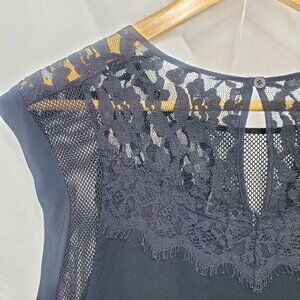 Rebecca Taylor Black Lace & Mesh Lightweight Sleeveless Top Blouse Small (A-10)