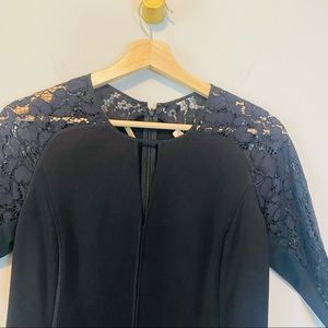 Rebecca Taylor Black Lace Sleeve Fitted Shift Dress Size 4