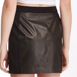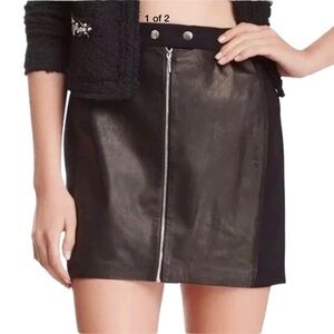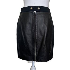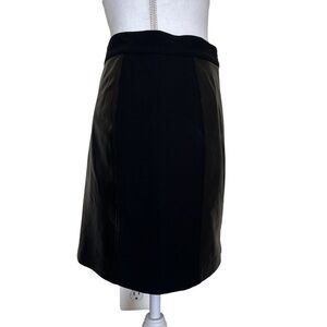 Rebecca Taylor Black Leather Panel Moto Mini Grunge Pencil Skirt Zip Front Sz 2