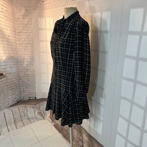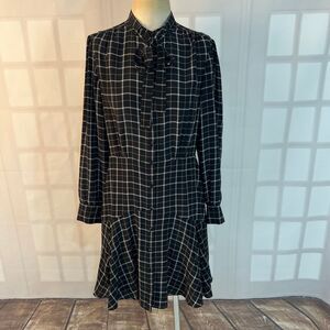 Rebecca Taylor Black Plaid Bow Tie Neck Long Sleeve Mini Silk Dress Size 8