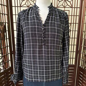 Rebecca Taylor Black Plaid Silk Long Sleeve Top Worn on Superstore Sz 2