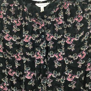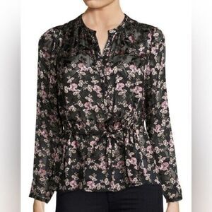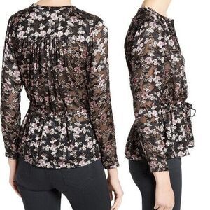 Rebecca Taylor Black Shadow Velvet Burnout Floral Semi-Sheer Blouse Size 4 silk