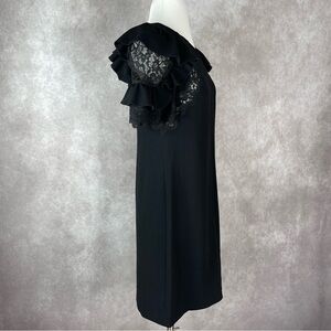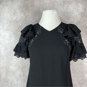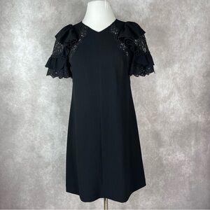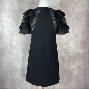 Rebecca Taylor Black Short Sleeve A-Line Crepe Puff Ruffle Lace Dress Size 0