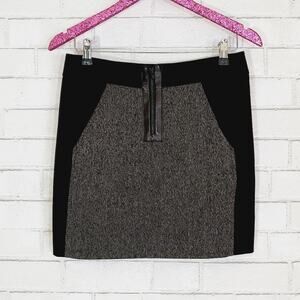 Lovely black wool with tweed panel mini skirt from Rebecca Taylor. Size 4 and in excellent condition. Zipper detail in the front. Measures 16.25" long and waist is 15"