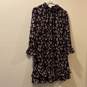 Rebecca Taylor Black and Pink Patterned shift Dress - size medium - silk blend