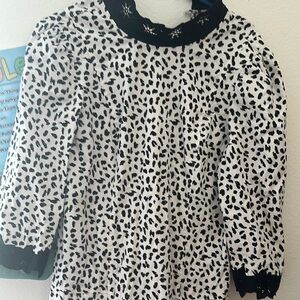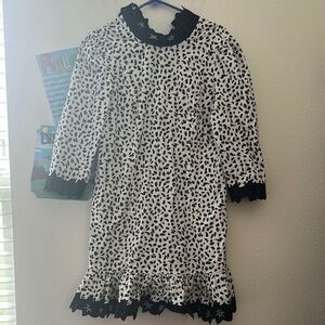 Rebecca Taylor Black and White Patterned Dress with Lace Trim