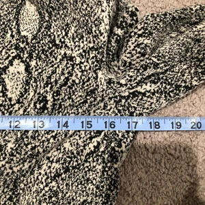 Make a statement with this stunning Rebecca Taylor black and white snake skin print knit blazer! The unique print and sleek silhouette will add a touch of sophistication to any outfit. The knit fabric is comfortable and breathable, making it perfect for any season. Size 4 fits true to size. Pair with your favorite jeans and heels for a chic and stylish look.