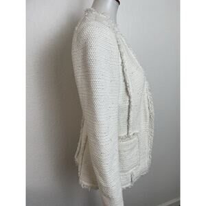 Rebecca Taylor Blazer Jacket Single Breast Open Front Fringe Tweed