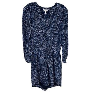Rebecca Taylor - Block Print, Long Sleeve, Floral Mini Dress - Size 0, Blue