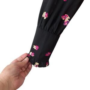 Rebecca Taylor Blouse Black Pink 6 Floriana Long Sleeve Silk Feminine Floral Top