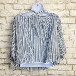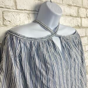 Rebecca Taylor Blouse Off Shoulder Cotton Strappy Stripe Blue White 8 Medium