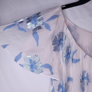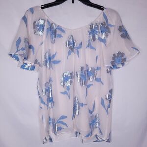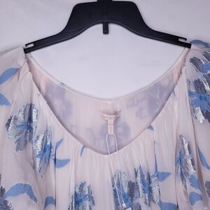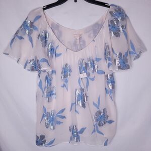 Rebecca Taylor Blouse Small Floral Fleur Metallic Silk