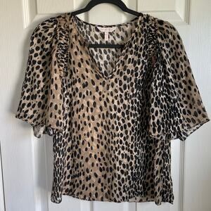 Rebecca Taylor Blouse Sz S Silk Blend Animal Print Semi-Sheer Half Sleeves