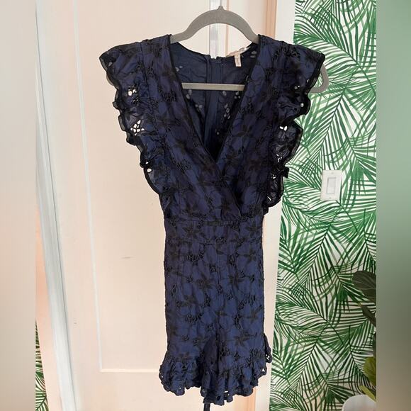 Rebecca Taylor Blue Embroidered Eyelet Romper Size 4