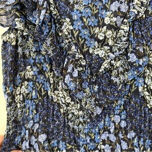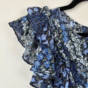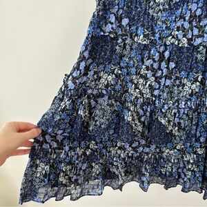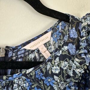 Rebecca Taylor | Blue Floral Tiered Ruffle 100% Silk Mini Dress Size 10