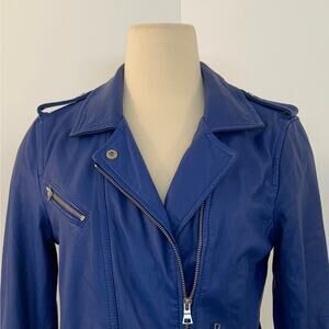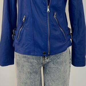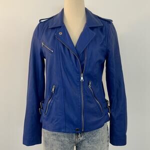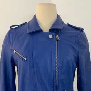 Rebecca Taylor Blue Moto Leather Jacket Full Zip Long Sleeve | Fits like S