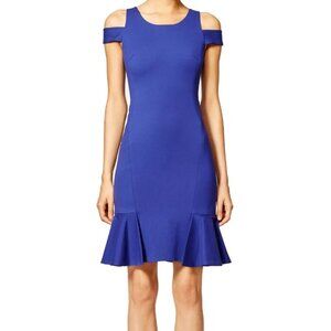 Rebecca Taylor Blue Sheath Mermaid Dress Off-Shoulder Fitted Flounce Size 0
